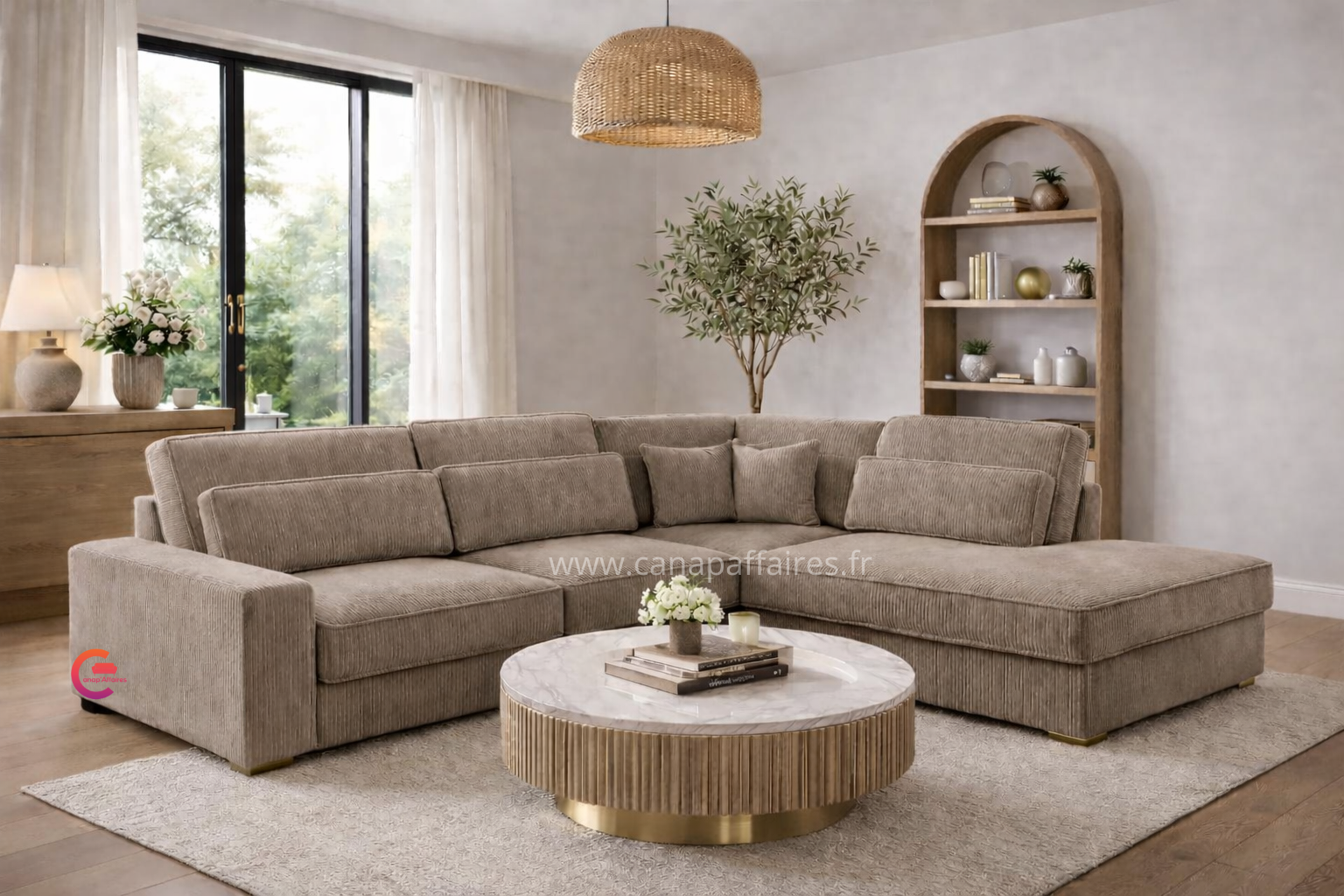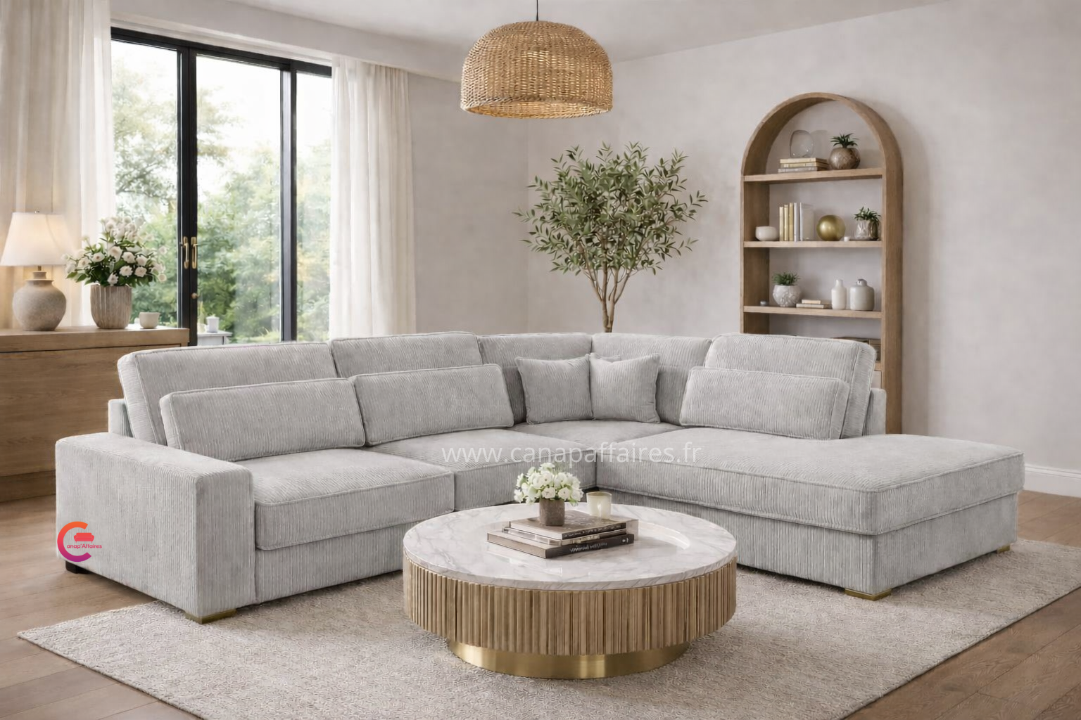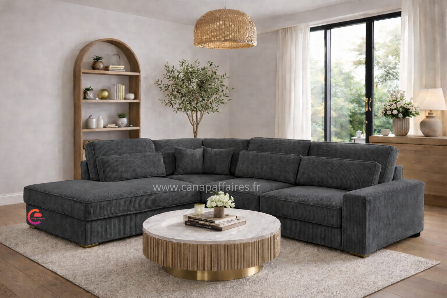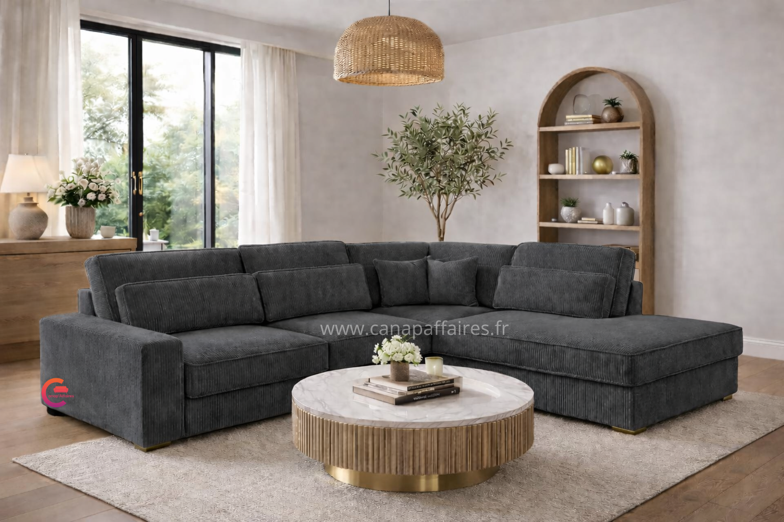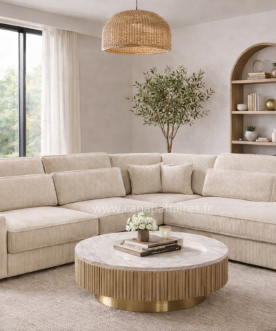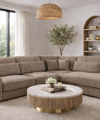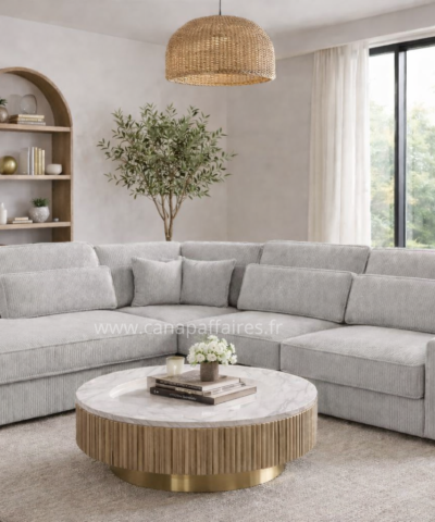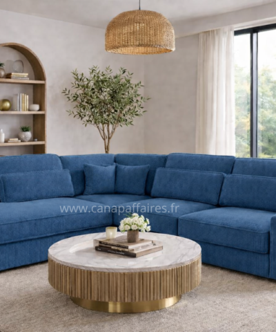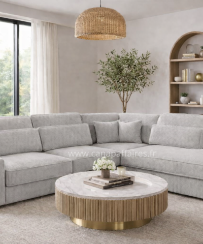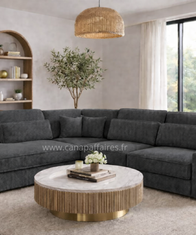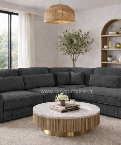 Avec sa finition en velours côtelé, il apportera une touche de texture et de raffinement à votre intérieur. Ce canapé d’angle est un ajout parfait pour créer un espace de détente confortable et chic dans votre salon.