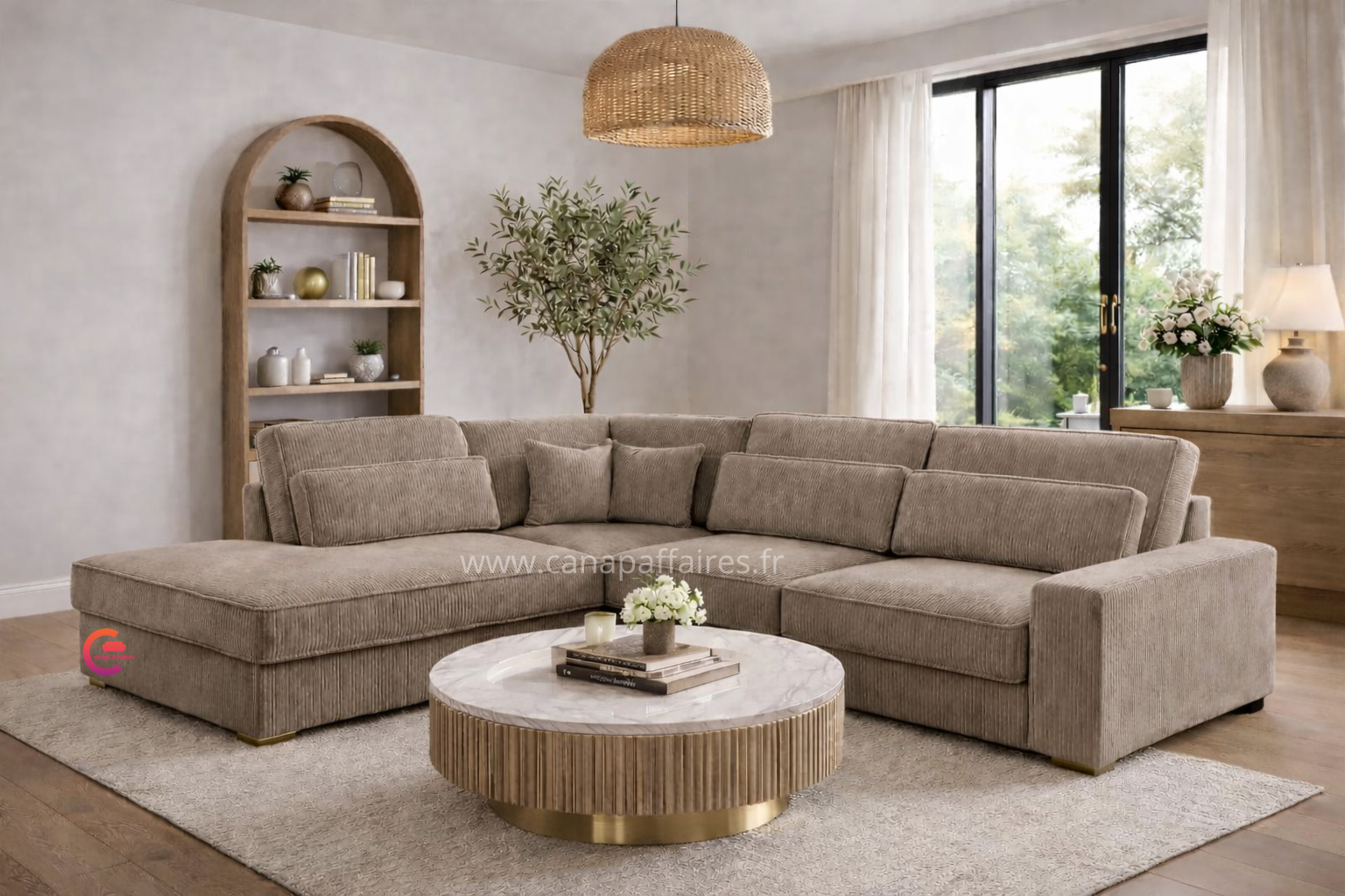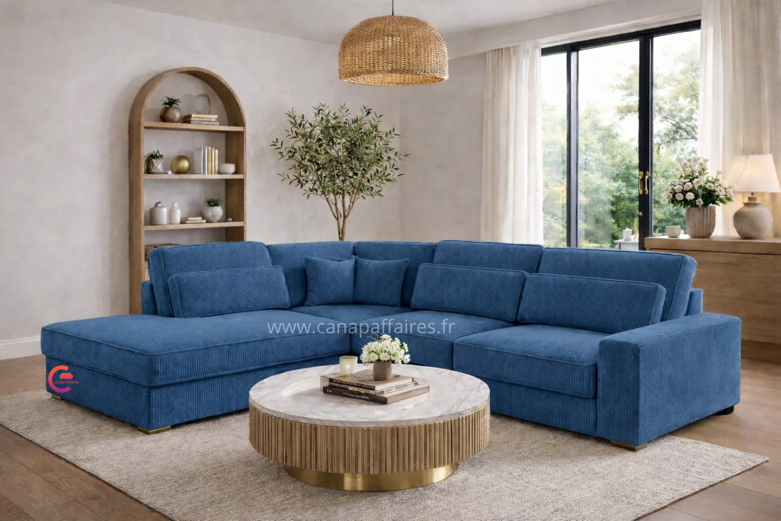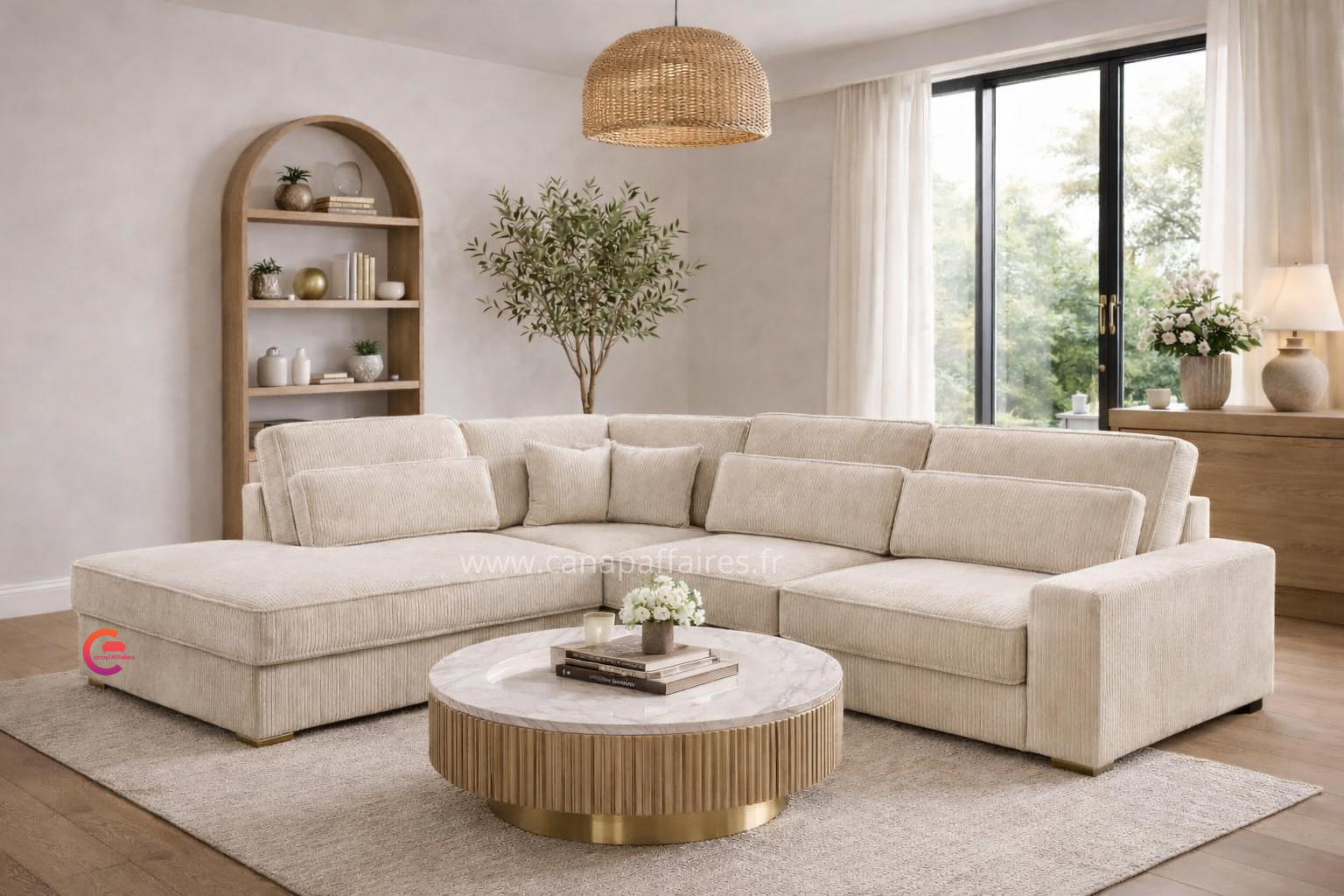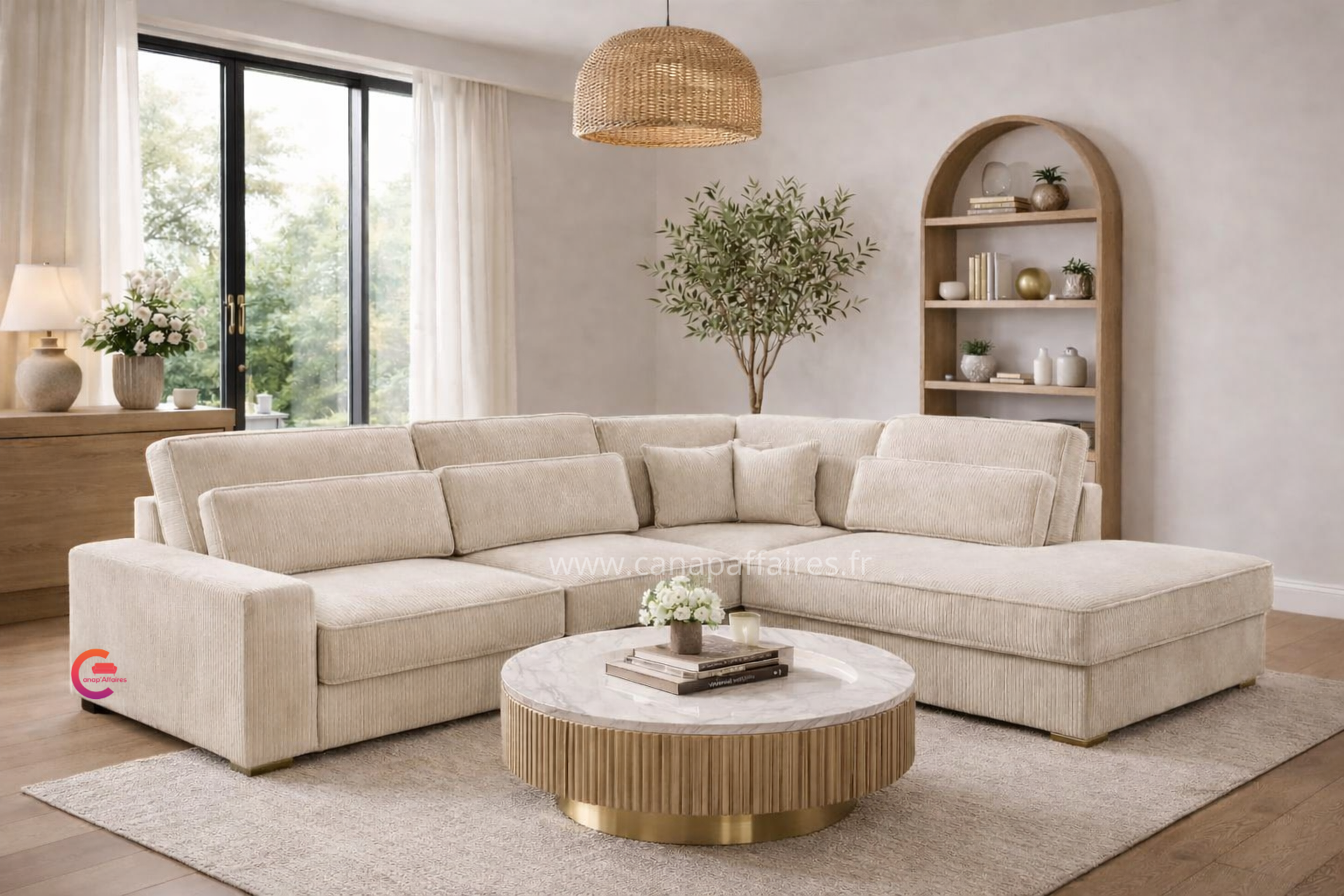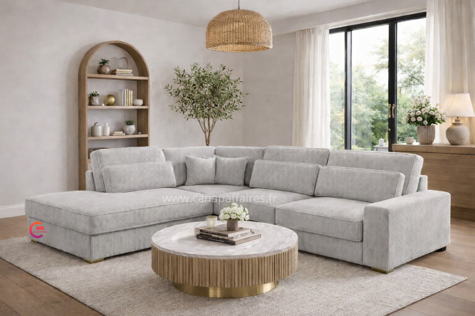 Avec sa finition en velours côtelé, il apportera une touche de texture et de raffinement à votre intérieur. Ce canapé d’angle est un ajout parfait pour créer un espace de détente confortable et chic dans votre salon.