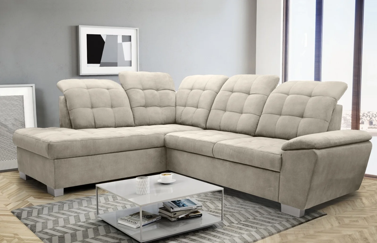 Ne manquez pas l’opportunité de transformer votre salon avec le canapé d’angle retour dossier Palermo convertible en lit. Profitez de notre livraison rapide