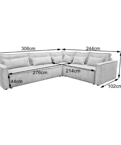 Avec ses dimensions de 306 cm x 244 cm, le canapé d’angle Toronto offre amplement d’espace pour accueillir. Sa forme élégante et ses proportions équilibrées en font un choix parfait pour les petits espaces tout en offrant un confort optimal. Il existe également une version angle méridienne 140 ou 170 cm ou même en panoramique