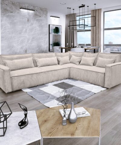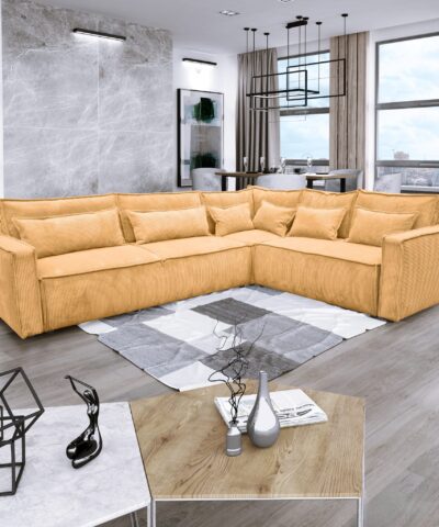 Revêtu d’un velours côtelé somptueux, le canapé d’angle Toronto offre une sensation de douceur. Ses coussins moelleux et ses coussins lombaires intégrés offrent un soutien optimal pour une expérience d’assise confortable et ergonomique.